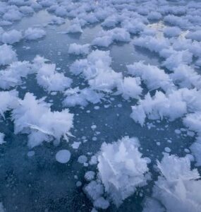 Photo of ice crystals above is representative of the collection of stunning water photos and videos posted on the Dancing with Water Facebook Page.